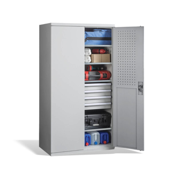Táto skriňa na náradie je ideálnym doplnkom pre dielne, garáže, ale aj komerčné a priemyselné prostredia, kde je potrebné mať spoľahlivé a odolné úložné riešenie. S jej vysokou nosnosťou a kvalitným oceľovým materiálom si môžete byť istí, že Vaše náradie bude bezpečne uložené a dobre organizované.