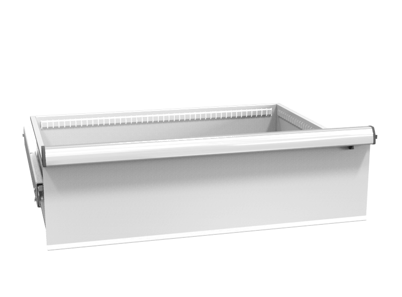 Zásuvka s poistkou bráni samovoľnému otvoreniu zásuvky. Štandardne je vo výbave mobilných výrobkov. Konštrukcia výsuvu zaistí 100% vysunutie zásuvky a umožní tak prístup k celej jej ploche. Vodiace lišty výsuvného mechanizmu sú v bočniciach korpusov skríň nastaviteľné po 25 mm. Plynulý, tichý chod, maximálne zaťaženie 200 kg.